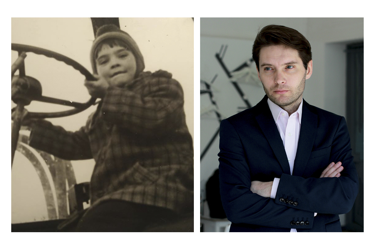 На фото слева Виктор находится в родной деревне, Малмыгах, он учится управлять своим первым в жизни комбайном «Нива». «Здесь я камплексую не только из-за своей внешности, но и из-за шапки с помпоном».