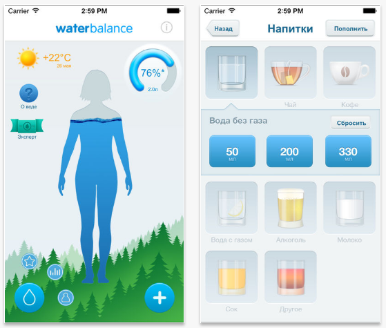 Гэты дадатак прызначаны для адсочвання ўзроўню вады ў арганізме. Вада — вельмі неабходны для нашага здароўя прадукт, які пастаўляе нашым клеткам кісларод і насычае арганізм пажыўнымі мікраэлементамі. Дадатак падлічыць неабходную колькасць вады менавіта вашаму арганізму і нагадае, калі прыйшоў час папоўніць арганізм вадой.