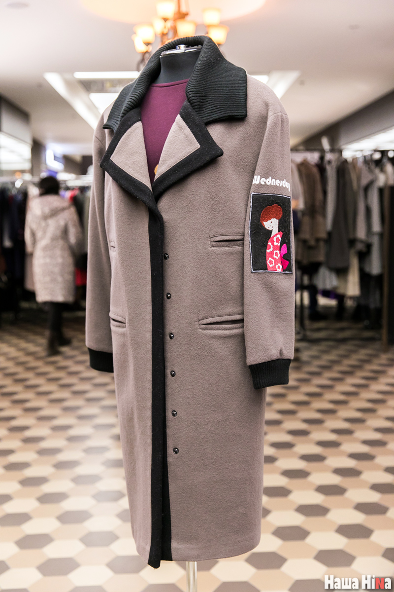 Согреться можно в пальто с интересным патчем от Марины Давыдовой.