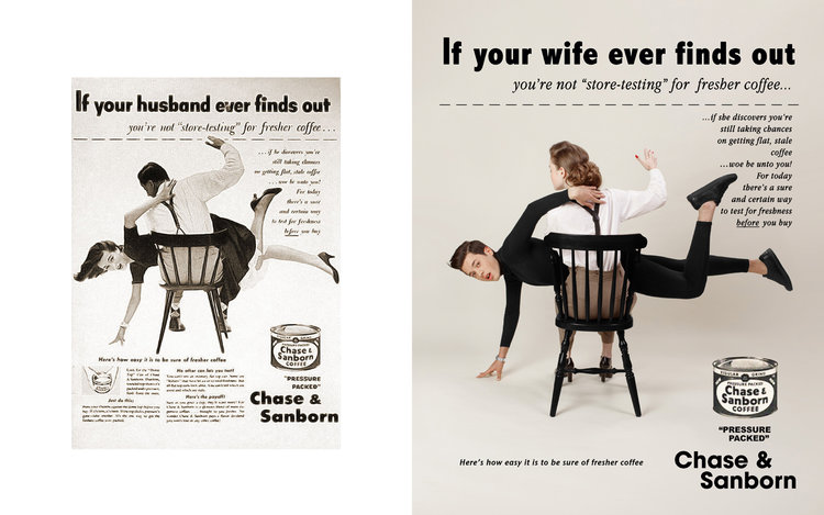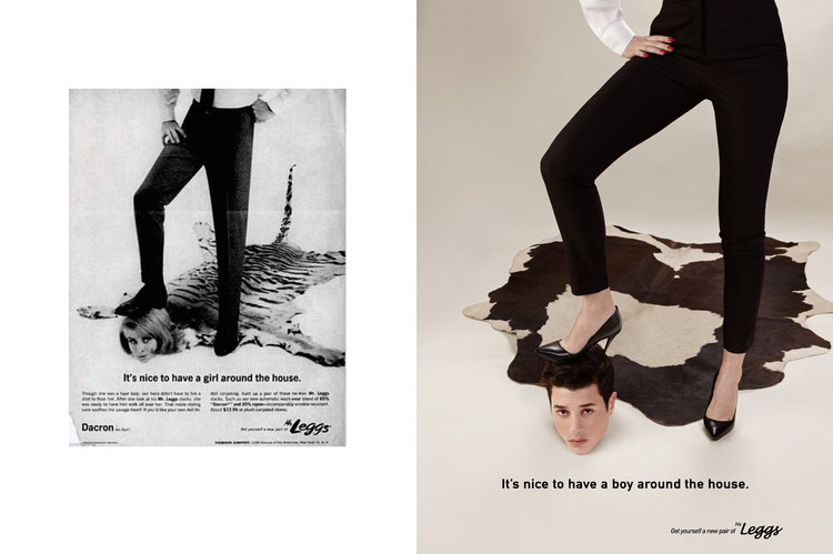 Ліванскі фатограф Ілай Рэкзала перазняў некалькі амерыканскіх фотаплакатаў 1950-х гадоў. Асноўным адрозненнем ад арыгіналаў стала тое, што месца жанчын на плакатах занялі мужчыны.