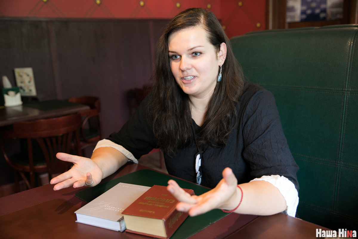 «Я прынесла дзве кнігі. Каб можна было — усе пяць рэчаў былі б кнігамі. Бо я — гэта мая бібліятэка перадусім: тая, што звонку, і тая, што ўнутры. Першая: расійска-крыўскі слоўнік Вацлава Ластоўскага, які мне падарыў легендарны паэт Анатоль Сыс, калі мне было 16 гадоў. Ён тады паўжартам хацеў аддаць ледзьве не ўсю хату, але я пагадзілася толькі на слоўнік. Гэта знакава. З маленства люблю слоўнікі. Як толькі навучылася чытаць, гартала іх, шукала словы, якія мне падабаюцца, фантазіравала, што яны могуць абазначаць, чытала тлумачэнні, адкрывала для сябе новыя словы. Гэта ж такое задавальненне — адкрываць і вынаходзіць новыя словы, амаль такое ж — як дазнавацца пра новых паэтаў!»