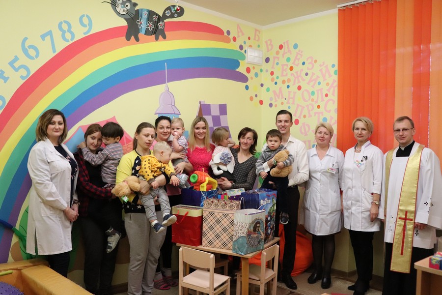 Во время посещения санктуария молодожены зашли к настоятелю прихода — ксендзу Юрию Беганскому, который также является капелланом часовни под титулом Матери Божей из Лурда, расположенной на территории Лидской ЦРБ. Так нашелся ответ на вопрос: куда передать собранные на свадьбе вместо цветов подарки — педиатрическому реабилитационному отделению.