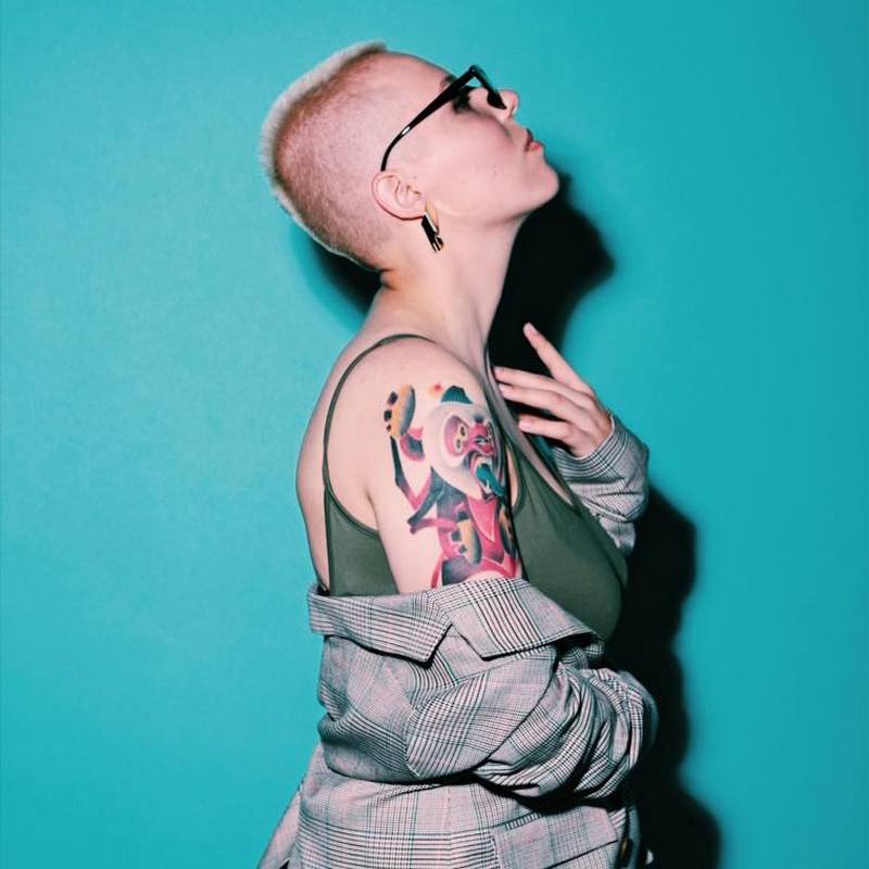 — С моими волосами всё вышло суперспонтанно. Как-то я столкнулась на улице с другом, с которым мы не виделись несколько лет, и тот сказал мне: «Слушай, я тебя знаю совсем другим человеком. Сейчас это не ты». У меня были длинные волосы и немного сбрит висок, и друг предложил мне у него постричься. Я тогда просто закрыла глаза, а когда открыла их — уже не было половины волос. Я поняла: меня стригут наголо.